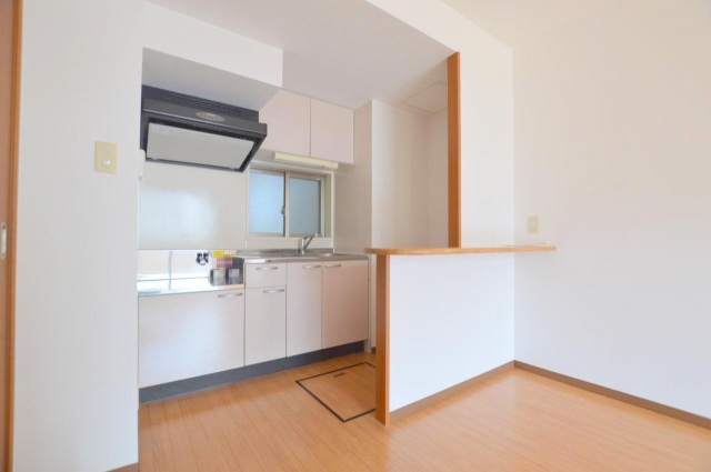 背面にカウンターを配したキッチンは