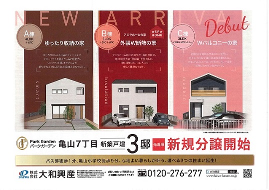 今回はその中でも亀山7丁目の新築分譲戸建をご紹介します。