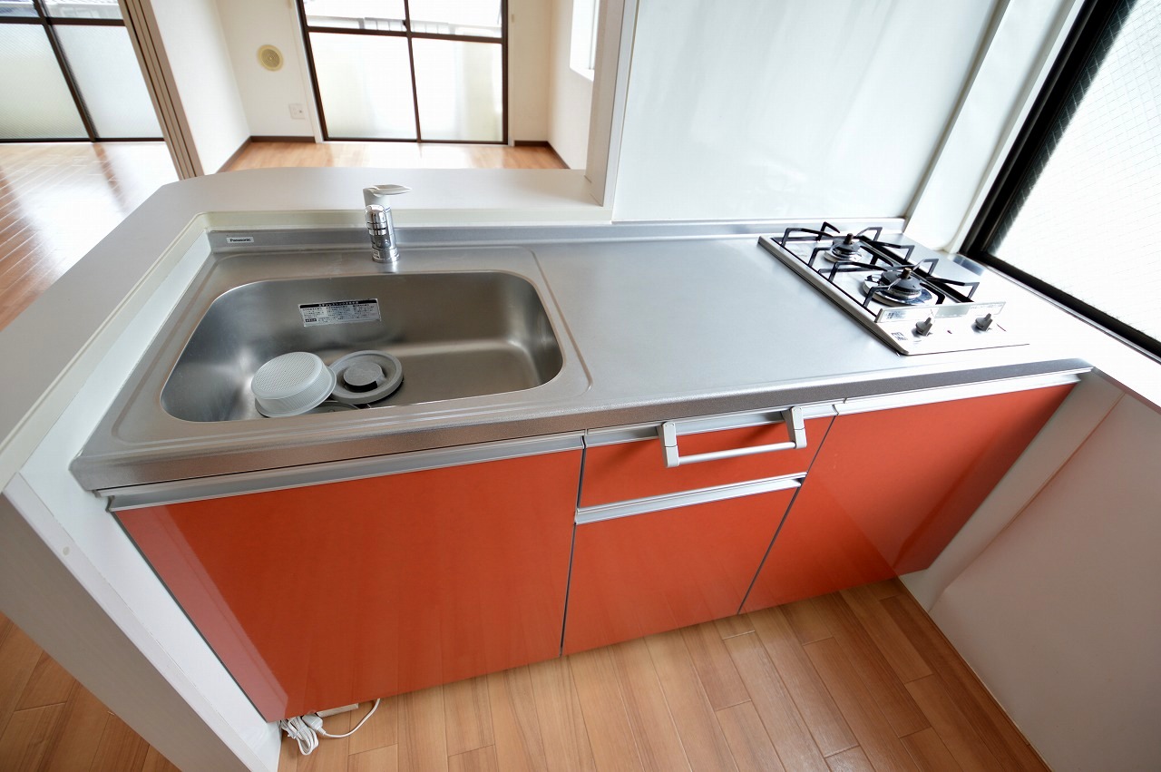 (キッチン)2口ガスコンロ付きのシステムキッチン