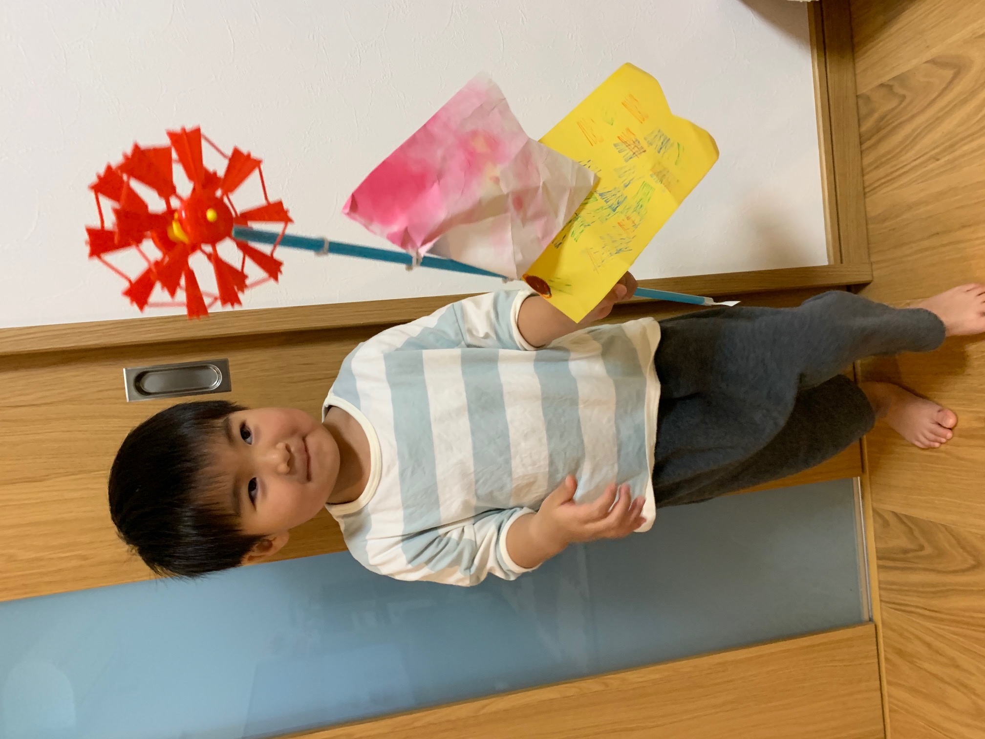 実は兄が使っていた30数年前の物ですが、ほぼ初めて見る風に泳ぐおさかなさんに子どもも歌いながら喜んでいました![]()
