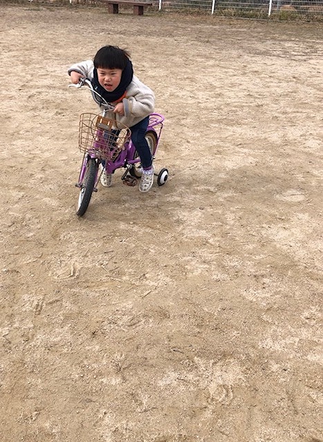 3歳頃に買った自転車・・ず~~~~っとコロ付きのまま練習をしておらず、お正月休みのときに