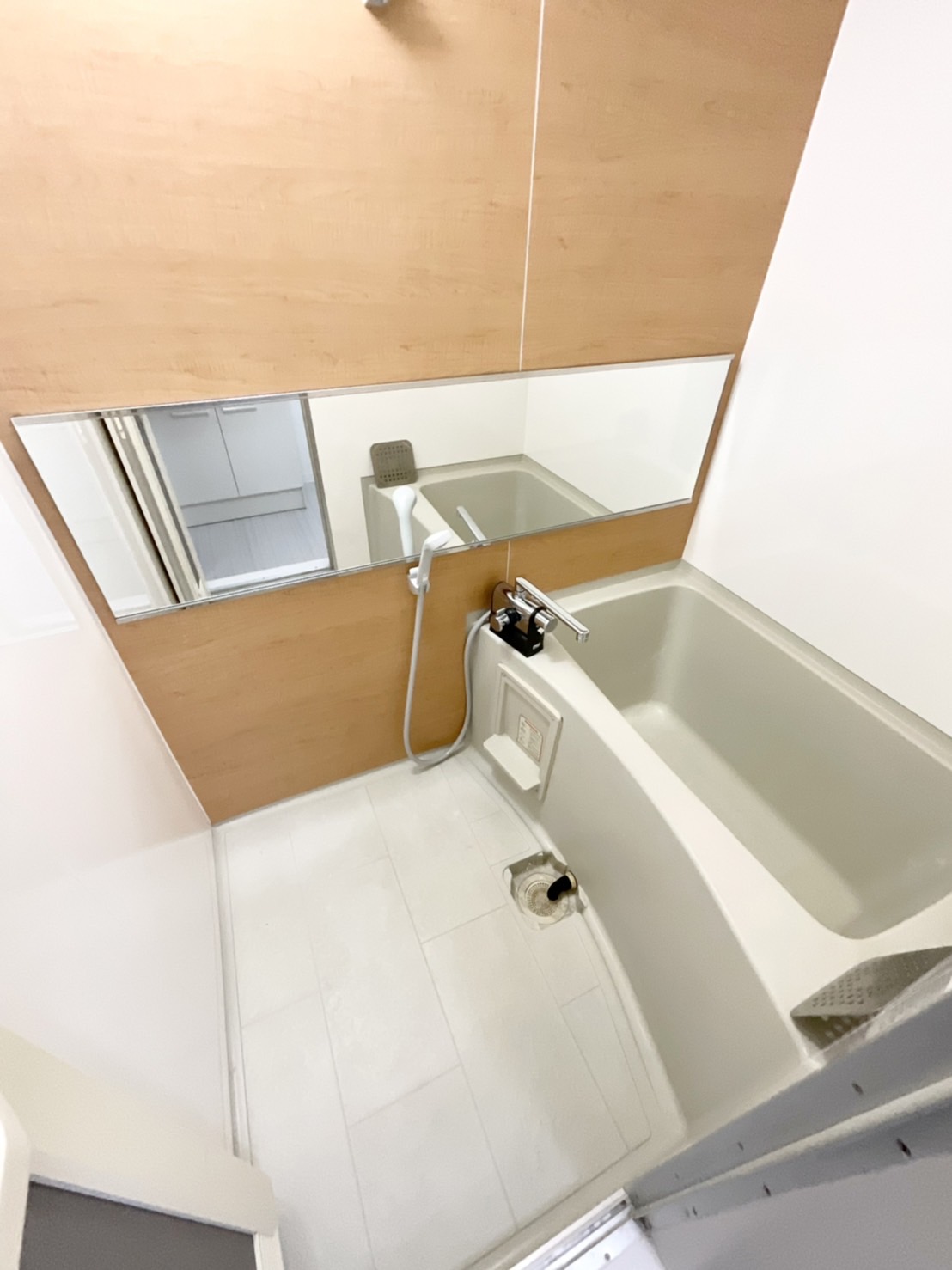 バスルームのワイドなミラーがオシャレ感醸してますね![]()