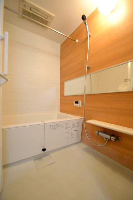 浴室:追い焚き/浴室乾燥機付きでワイドミラーが目を惹く広々バスルーム