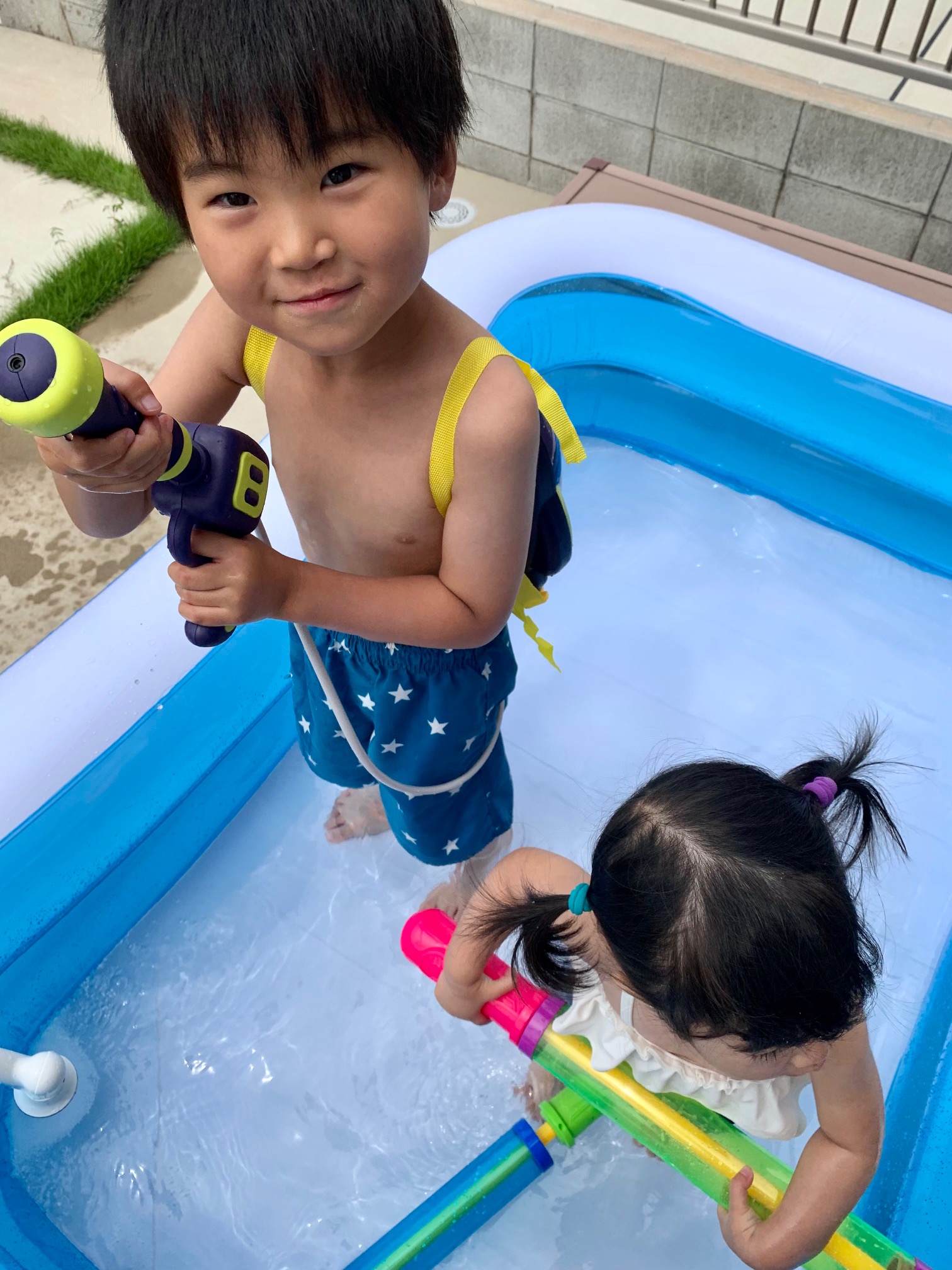 プールは昨年購入したのですが、なかなか日曜日に私一人でする気力も体力もなく、、、夫と休みも合わず、、、