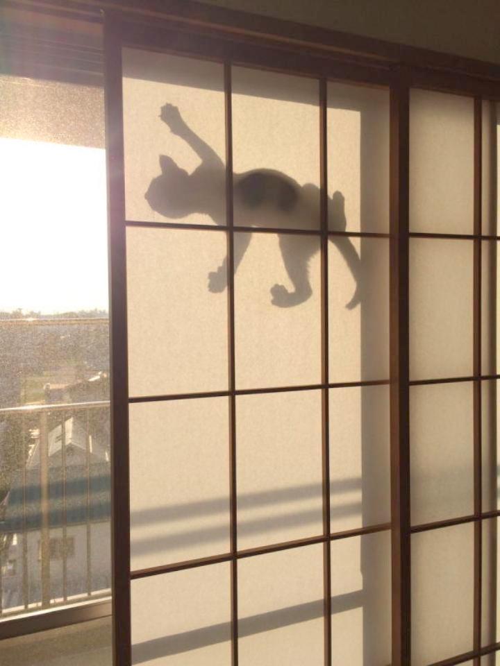 ”梅咲や せうじに猫の 影法師”
