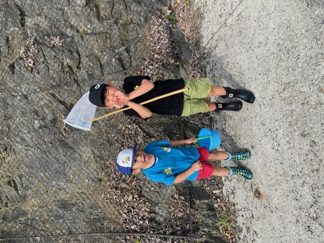 小さい蟹さん、やどかり、タニシ?等 網を持ってるくせに網ではなく、素手で捕まえていました![]()