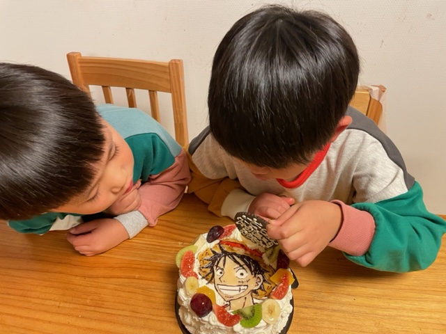 誕生日ケーキは、 ワンピースのルフィでお祝いしました![]()