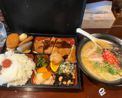 ラーメンと御飯大盛りの弁当が付いて、ボリューム満点でした![]()