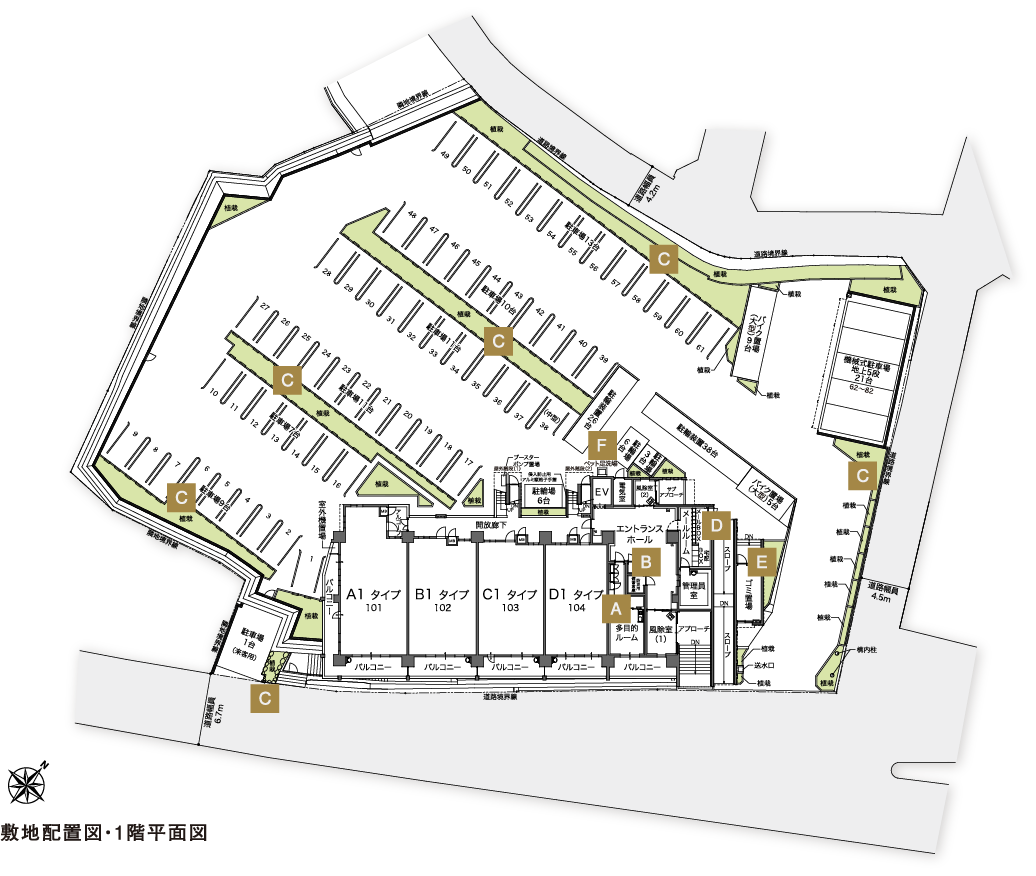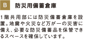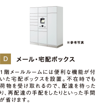 歩車分離設計や、備蓄倉庫、多目的ルーム、ペット足洗場、宅配ボックスなど、