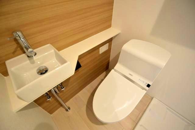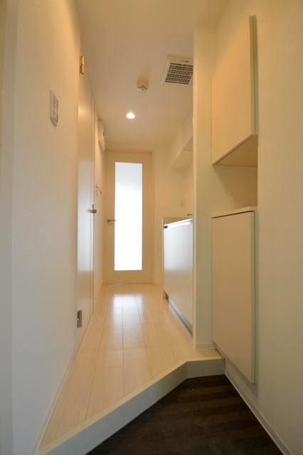 って、それでは普通・・・中区の街並み、入居者層に合わせるべく、洋室の横壁の一面を『アクセントクロス』ではなく、『アクセントタイル』にしてみました。ゴツゴツした本物のタイルを使っており、照明の色や、昼・夜で見える姿は変わります。お洒落なあなたにピッタリな内装仕上げになってます(^ⅴ^)