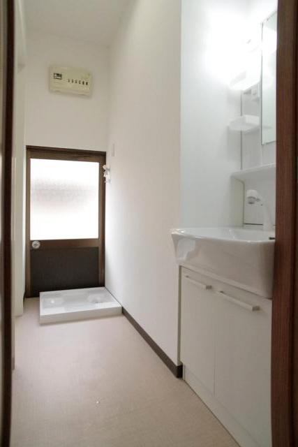 勝手口の前を脱衣場に(洗面台・室内洗濯機置き場を設置)