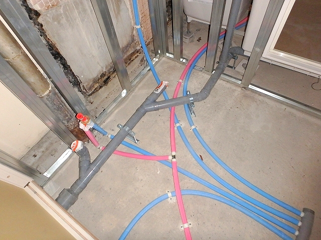 水廻りの位置を変更したので、給排水も工事!!