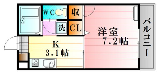 | 築年月 | 1999年1月 | 間取り | 1K( K7.2畳/K3.1畳 ) | 専有面積 | 24.5m2 |