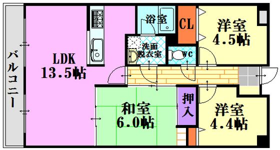 | 築年月 | 1995年7月 | 間取り | 3LDK( LDK10畳/洋室4.6畳/洋室4.5畳/和室6畳 ) | 専有面積 | 65.2m2 |