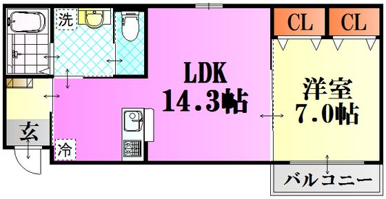 | 築年月 | 2017年2月 | 間取り | 1LDK( LDK14.3畳/洋室7畳 ) | 専有面積 | 47.4m2 |