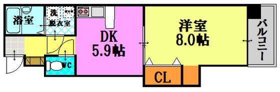 | 築年月 | 1998年7月 | 間取り | 1DK( 洋室8畳/DK5.9畳 ) | 専有面積 | 31.5m2 |