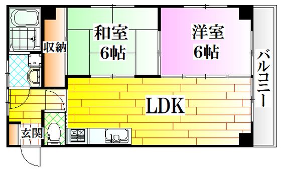 | 築年月 | 1991年1月 | 間取り | 2LDK( 和室6畳/洋室6畳/LDK12畳 ) | 専有面積 | 58m2 |