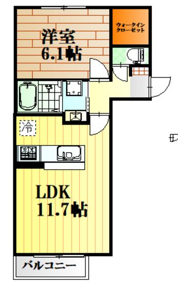 | 築年月 | 2021年7月 | 間取り | 1LDK( LDK11.7畳/洋室6.1畳 ) | 専有面積 | 43.74m2 |