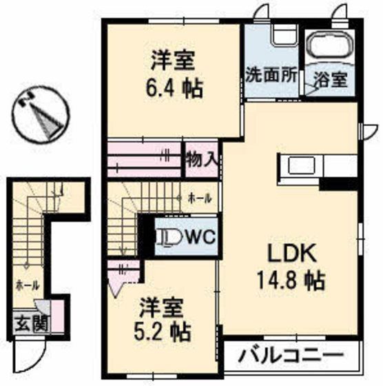 | 築年月 | 2012年1月 | 間取り | 2LDK( LDK14.8畳/洋室6.4畳/洋室5.2畳 ) | 専有面積 | 61.2m2 |
