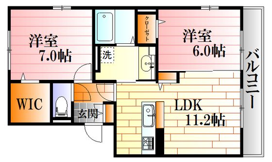 | 築年月 | 2013年12月 | 間取り | 2LDK( LDK11.2畳/洋室7畳/洋室6畳 ) | 専有面積 | 58.37m2 |