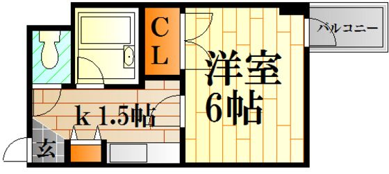 | 築年月 | 1991年6月 | 間取り | 1K( 洋室6畳/K1.5畳 ) | 専有面積 | 18m2 |