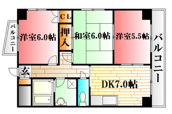 | 築年月 | 1994年3月 | 間取り | 3DK( 和室6畳/洋室6畳/洋室5.5畳/DK7.5畳 ) | 専有面積 | 55.25m2 |