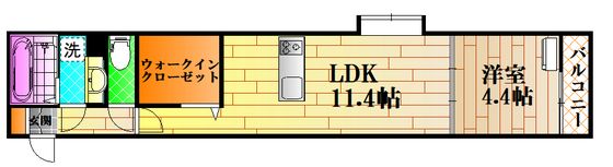 | 築年月 | 2020年3月 | 間取り | 1LDK( LDK11.4畳/洋室4.5畳 ) | 専有面積 | 41.6m2 |