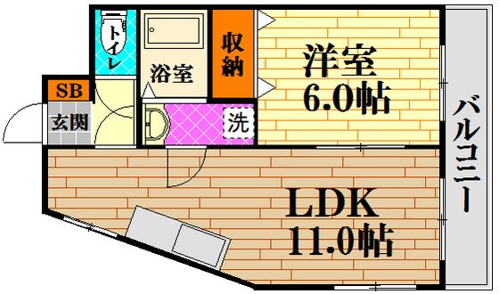 | 築年月 | 1980年1月 | 間取り | 1LDK( 洋室6畳/LDK11畳 ) | 専有面積 | 39.6m2 |