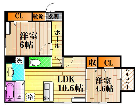| 築年月 | 2022年3月 | 間取り | 2LDK( LDK10.6畳/洋室6畳/洋室4.6畳 ) | 専有面積 | 53.77m2 |