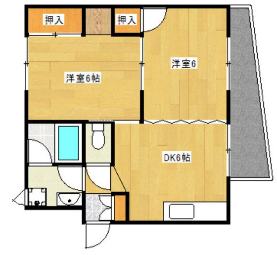 | 築年月 | 1989年11月 | 間取り | 2DK( DK6畳/洋室6畳/洋室6畳 ) | 専有面積 | 44m2 |