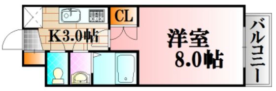 | 築年月 | 2000年4月 | 間取り | 1K( K3畳/洋室8畳 ) | 専有面積 | 23.64m2 |