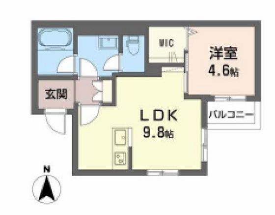 | 築年月 | 2024年3月 | 間取り | 1LDK( LDK9.8畳/洋室4.6畳 ) | 専有面積 | 37.93m2 |