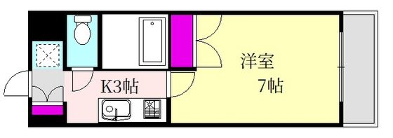 | 築年月 | 1998年2月 | 間取り | 1K( K3畳/洋室7畳 ) | 専有面積 | 23.62m2 |