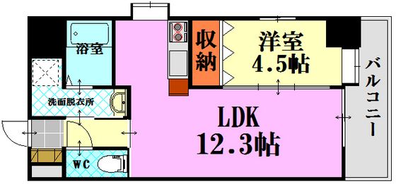 | 築年月 | 2013年2月 | 間取り | 1LDK( LDK12.3畳/洋室4.5畳 ) | 専有面積 | 40.84m2 |