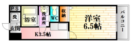 | 築年月 | 1996年4月 | 間取り | 1K( 洋室6.5畳/K3.5畳 ) | 専有面積 | 24.03m2 |