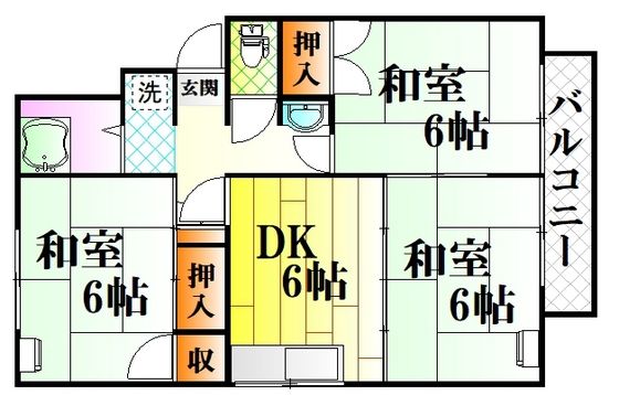 | 築年月 | 1990年4月 | 間取り | 3DK( DK6畳/和室6畳/和室6畳/和室6畳 ) | 専有面積 | 50m2 |