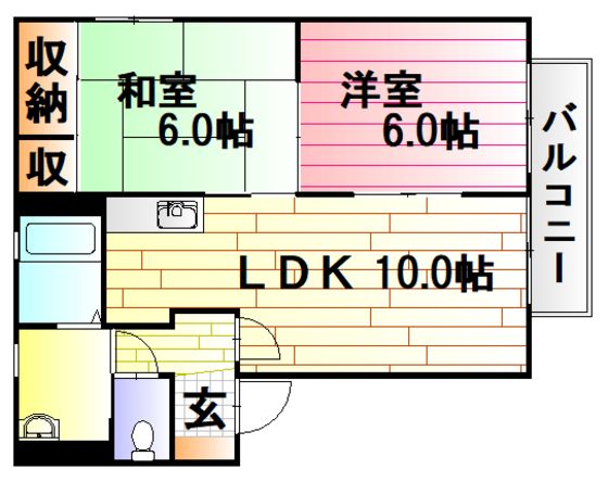 | 築年月 | 2004年1月 | 間取り | 2LDK( LDK10畳/洋室6畳/和室6畳 ) | 専有面積 | 50.04m2 |