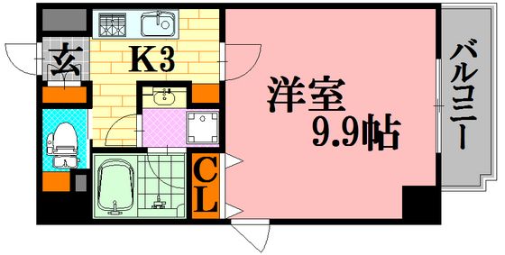 | 築年月 | 2017年2月 | 間取り | 1K( 洋室9.9畳/K3畳 ) | 専有面積 | 29.56m2 |