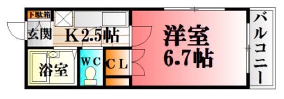 | 築年月 | 1996年3月 | 間取り | 1K( 洋室6.7畳/K2.5畳 ) | 専有面積 | 19.88m2 |
