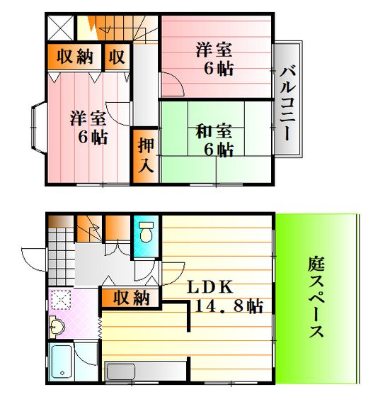 | 種別 / 構造 | タウンハウス / 木造 | 主要採光面 | 南 | 所在階 / 階数 | 1階 / 2階 |