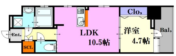 | 築年月 | 2018年1月 | 間取り | 1LDK( LDK10.5畳/洋室4.7畳 ) | 専有面積 | 40.02m2 |