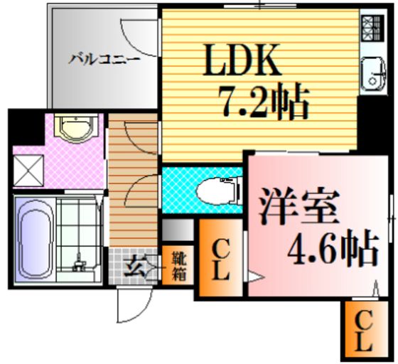 | 築年月 | 2014年2月 | 間取り | 1LDK( LDK7.2畳/洋室4.6畳 ) | 専有面積 | 30.72m2 |