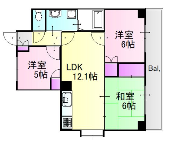 | 築年月 | 2003年3月 | 間取り | 3LDK( LDK12.1畳/洋室6畳/洋室5畳/和室6畳 ) | 専有面積 | 58.19m2 |