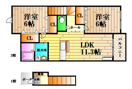 | 築年月 | 2006年1月 | 間取り | 2LDK( LDK11.3畳/洋室6畳/洋室6畳 ) | 専有面積 | 58.48m2 |