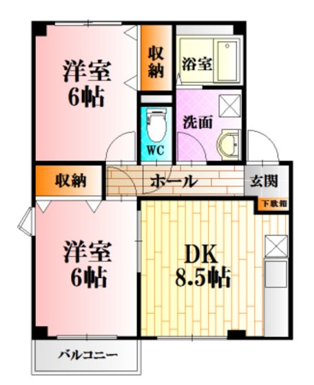 | 築年月 | 1999年2月 | 間取り | 2DK( 洋室6畳/洋室6畳/K8.5畳 ) | 専有面積 | 50.85m2 |