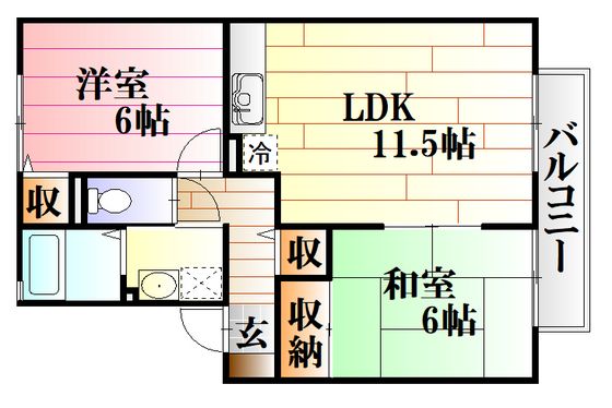 | 築年月 | 2003年9月 | 間取り | 2LDK( LDK11.5畳/洋室6畳/和室6畳 ) | 専有面積 | 53.6m2 |