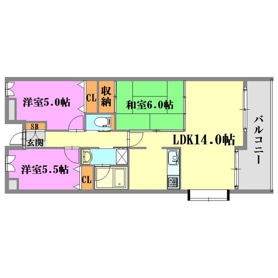 | 築年月 | 1996年3月 | 間取り | 3LDK( 和室6畳/洋室5.5畳/洋室5畳/LDK14畳 ) | 専有面積 | 71.77m2 |