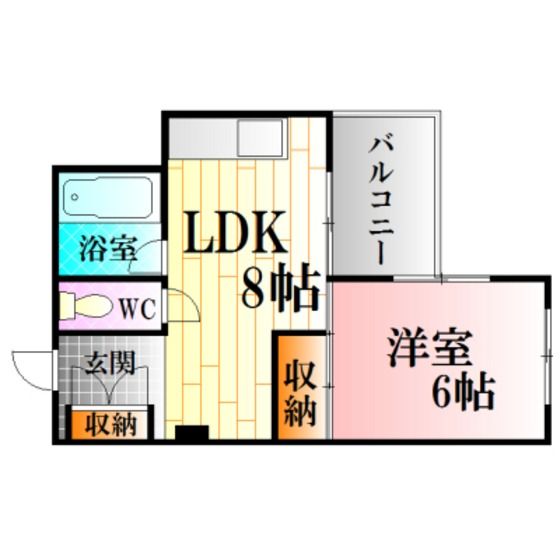 | 築年月 | 1988年3月 | 間取り | 1LDK( LDK8畳/洋室6畳 ) | 専有面積 | 29.7m2 |