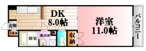 | 築年月 | 1990年3月 | 間取り | 1DK( DK8畳/洋室11畳 ) | 専有面積 | 37.44m2 |