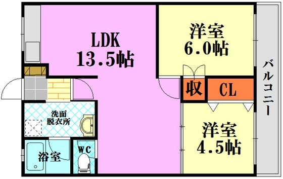 | 築年月 | 1978年11月 | 間取り | 2LDK( LDK13.5畳/洋室4.5畳/洋室6畳 ) | 専有面積 | 47.54m2 |
